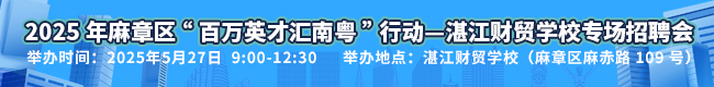 地址:湛江市赤坎區(qū)體育北路6號君臨世紀(jì)廣場5號樓2層02號商鋪 郵編:524000 郵箱:0759@0759job.com 中文網(wǎng)址:湛江人才網(wǎng).com