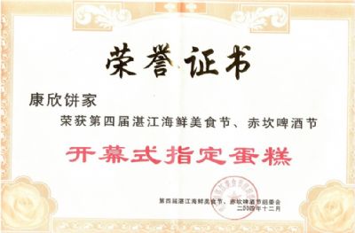 11.2004年——2010年期間,康欣蛋糕多次獲湛江市大型慶典活動指定蛋糕榮譽