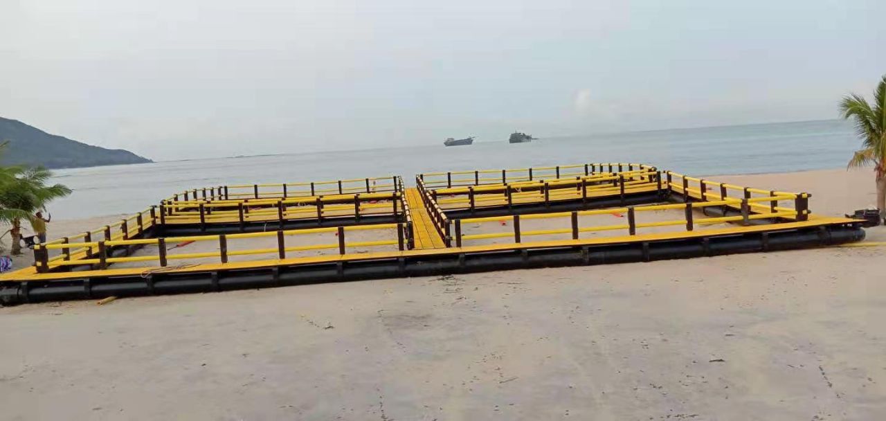 公司生產的網箱主要有方型浮管式網箱、圓型浮管式網箱和船載式自動投餌機、遠程多路自動平臺式投餌機、吸魚泵、起網(洗網)工作平臺、養殖看護平臺等系列配養殖裝備。各型網箱采用高密度聚乙稀(HDPE)原料制作的專用管材,強度高、彈性好、抗老化性強,使用壽命長達15年以上。網衣采用絞捻無結網片制作,采用雙疊縫制,工藝先進,結網牢固,是目前深水抗風浪網箱配套網衣的首選產品。