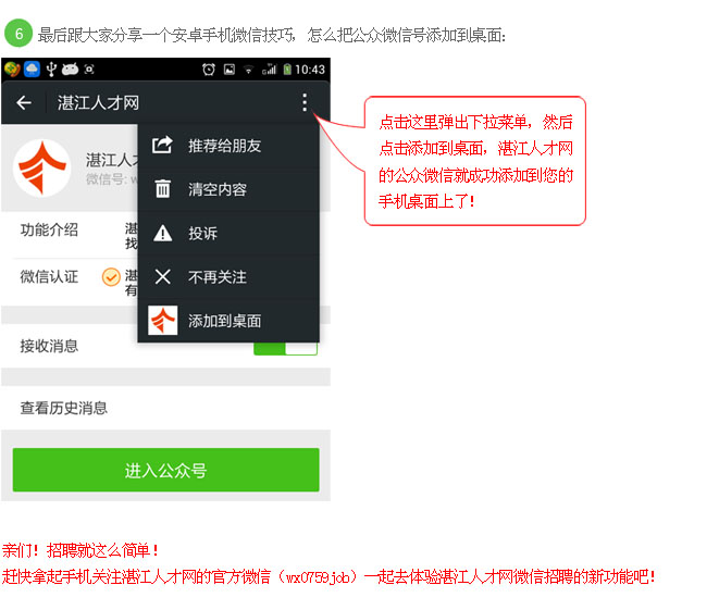 湛江人才網是一個主要面向湛江地區的求職招聘門戶網站,是湛江地區訪問量最高的、開辦時間最早的、本地化優勢最顯著的、獨具品牌個性魅力最強的求職招聘專業網站。隨著移動互聯網的高速發展,微信目前已經成為目前最受歡迎的個人通訊、娛樂、交友等為一體的移動端平臺。為了感謝廣大英才10年來對湛江人才網一直以來的鼎力支持和信賴,湛江人才網現推出微信求職平臺,方便廣大英才在玩轉微信的同時,隨時隨地找工作。找工作就在彈指間,找工作就這么簡單!現在讓我們一起體驗湛江人才網微信求職平臺吧!