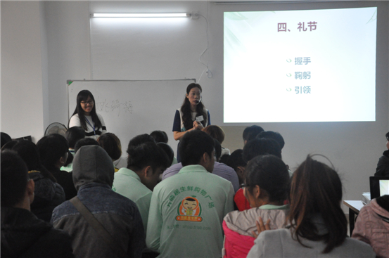 為提高員工個人素質,提升企業形象,11月24日早上,湛江人才網《職場禮儀》系列培訓講座走進廣東萬能居生鮮購物廣場有限公司,為萬能居生鮮購物廣場近140名員工進行禮儀培訓。