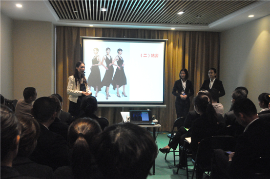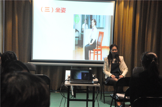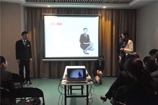 儀態仍然是禮儀培訓的重點,姚老師分別從“站姿”、“坐姿”、“走姿”等方面進行了詳細的講解,并讓職員參與到互動中,進行儀態實操。