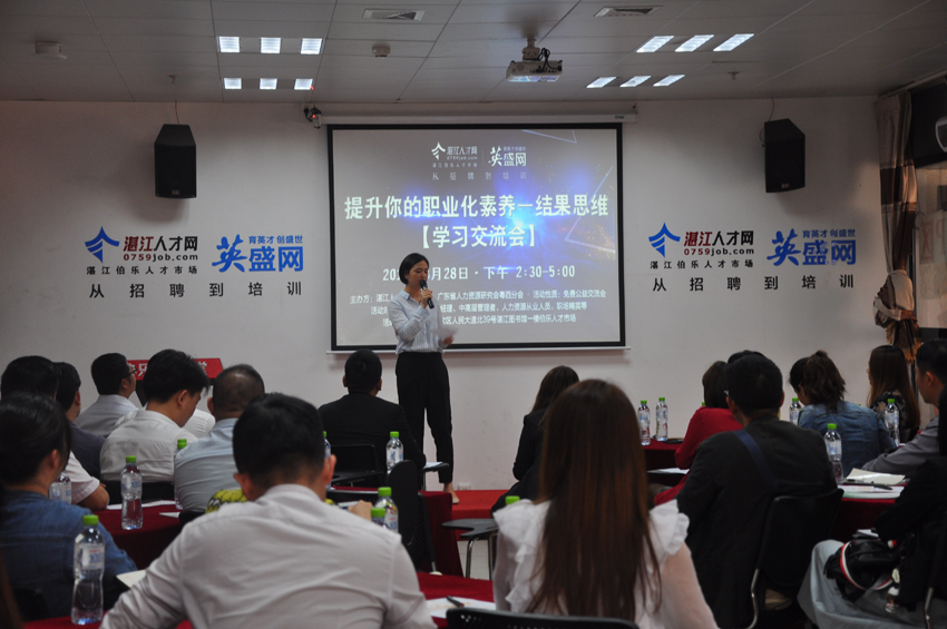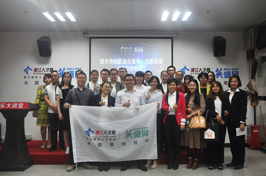 2018年3月28日下午2點30分,湛江人才網&英盛網聯合舉辦了以《提升你的職業化素養—結果思維》為主題的學習交流會,本次交流會在湛江伯樂人才市場如期舉辦,現場共有100位企業高管及行業精英參與本次活動。