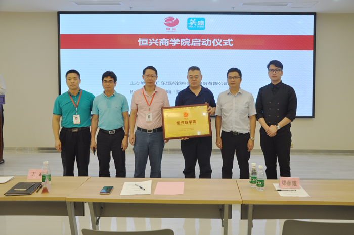 湛江人才網總經理(梁藤耀)與恒興股份副總裁(王建紅)給恒興商學院正式揭牌