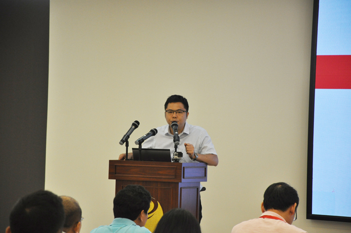 恒興商學院啟動儀式——湛江人才網總經理梁藤耀上臺致辭
