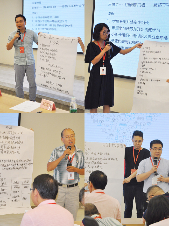各組組長上臺做總結分享,并在今后的工作中靈活運用和改善