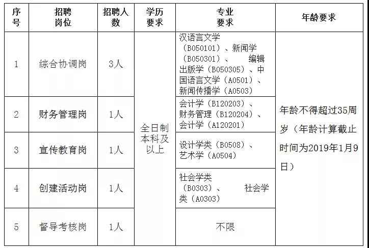 本次招聘崗位為創(chuàng)文工作人員,面向社會(huì)公開招聘,招聘人數(shù)7名,詳情見下表: