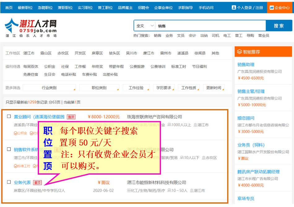 | 增值服務(wù)二:(職位關(guān)鍵字搜索置頂)招聘收費(fèi)標(biāo)準(zhǔn) |